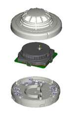 Habár az optikai kamra viszonylag mély, az érzékelő mégis lapos, mert egy új konstrukciós megoldással a kamrát belesüllyesztették az érzékelő alkatrészei közé, az áramköri lemezbe.
