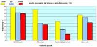 A 6. ábra oszlopdiagramján sárga színnel jelölt érték azt jelzi, hogy az egyes érzékelő típusok milyen százalékos arányban ismerték fel a zavarnak minősülő környezeti hatásokat, azaz nem jeleztek tűzjelzést a teszt során alkalmazott 21 zavarnak minősülő tűzeset ill. környezeti hatás esetén, míg a kék érték azt jelzi, a vizsgálat során alkalmazott 29 valós tűzből milyen százalékban történt tűzjelzés. A pirossal jelzett érték a két korábbi százalékos értékből az ábrán szereplő képlet szerint képzett teljesítmény jellemző, mely szerint ha pl. a valós tűz felismerő képesség és a zavaró körülmény felismerő képesség értéke 50- 50 %-os, akkor az eredő mutató csak 25%-os.