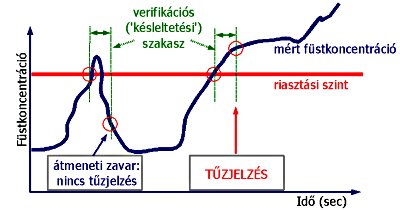 Ha a bejelzés vélhetően időszakosan fennálló zavaró jelenségektől származik (dízeltargonca bejárása, technológiai berendezés bekapcsolása), amelyek verifikációs késleltetéssel megszüntethetők, akkor az adott területen levő érzékelőknél engedélyezhetjük a verifikáció szerinti működést.