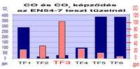 Szénmonoxid és széndioxid érzékelők minősítésére nem rendelkezünk szabványban rögzített előírásokkal, teszttüzekkel, ezért a 2. ábra a füstérzékelők minősítésére használt szabványos teszttüzek során keletkező szénmonoxid (CO) és széndioxid (CO2) mennyiségeket mutatja. Az ábrán jól látszik, hogy a lánggal égő tüzek esetén, melyeknél tökéletes égés valósul meg (TF1, TF5, TF6) döntően a széndioxid képződés a jellemző, míg a füstölgő, parázsló tüzeknél, melyekre a tökéletlen égés a jellemző (TF2, TF3), döntően szénmonoxid képződik.